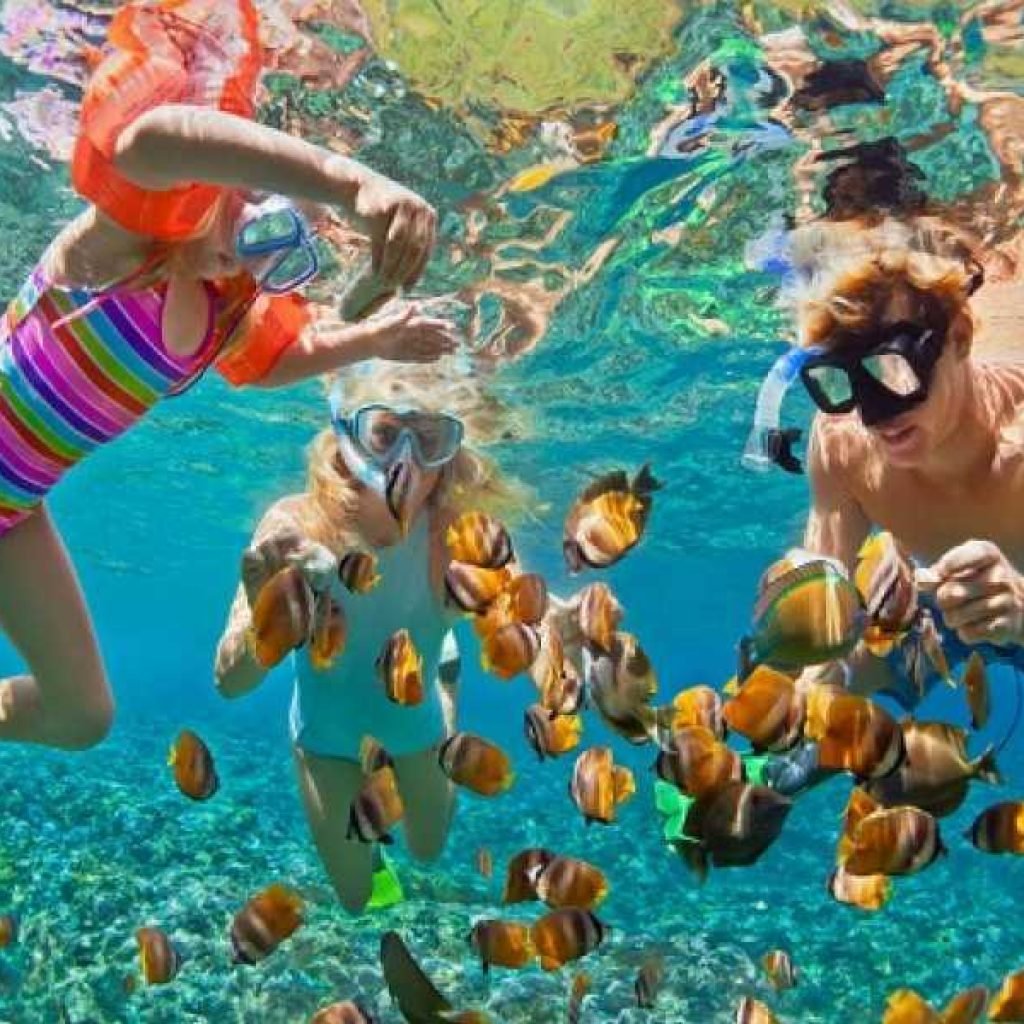 You arrive, you get settled on the beach, and then you do snorkelling in short, enjoyable sessions. You can do: