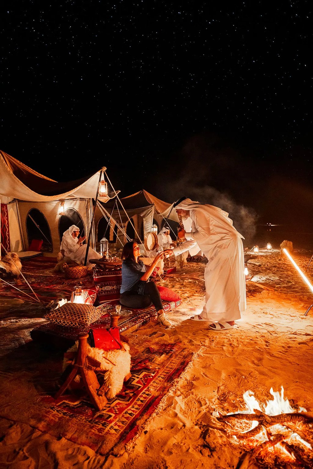 Afterwards, enjoy a camel ride across the sand dunes, followed by watching the magical sunset from the heart of the desert.